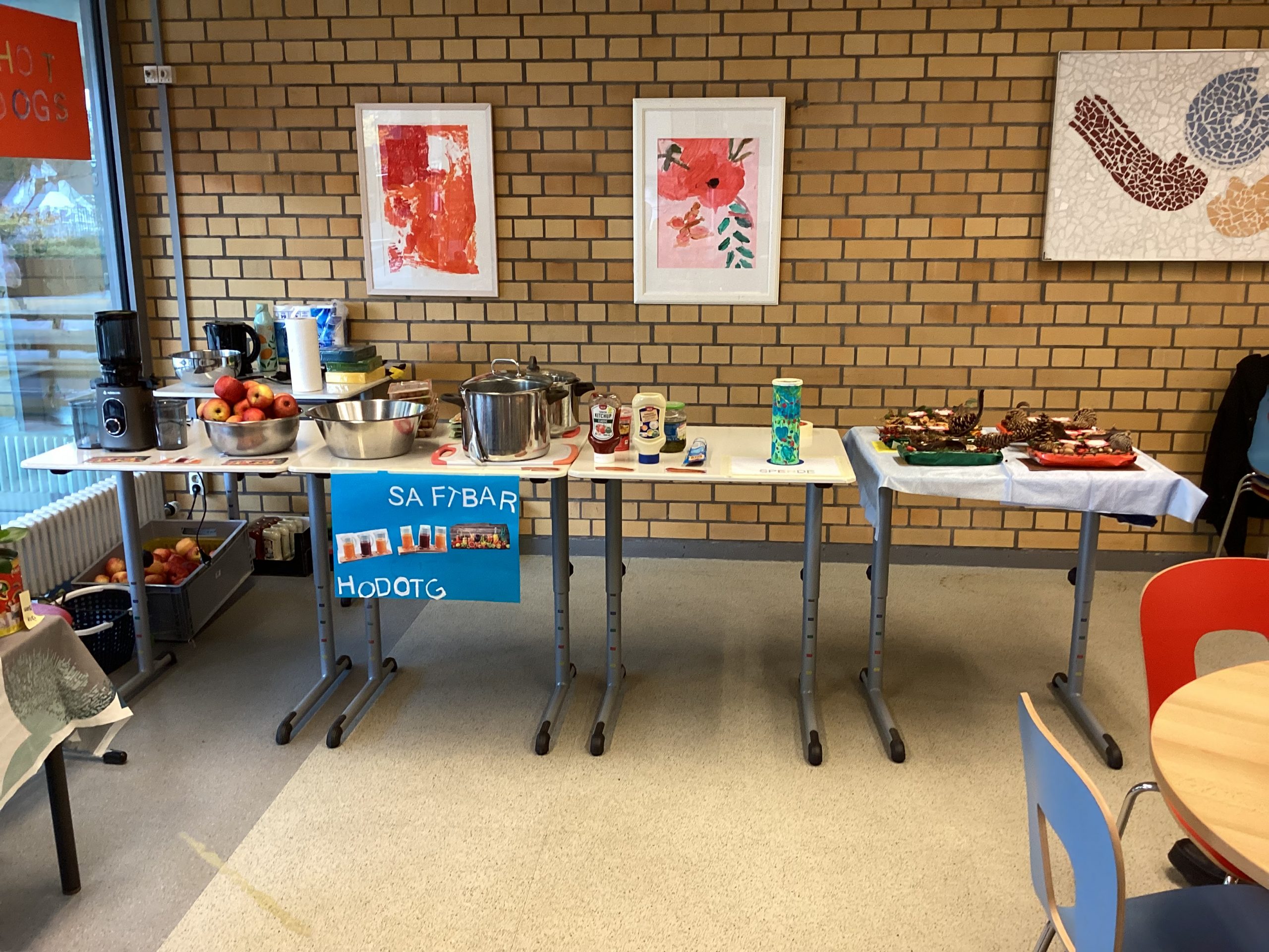 Im und um das Schulhaus gab es viele verschieden Angebote zum Zuschauen, Mitmachen, Einkaufen oder Essen und Trinken. Der Förderverein und die Elternvertretung hatten leckere Köstlichkeiten in Salzig und Süß zu bieten. Ergänzt wurde das kulinarische Angebot durch die H2 mit ihrem HotDog-Stand.