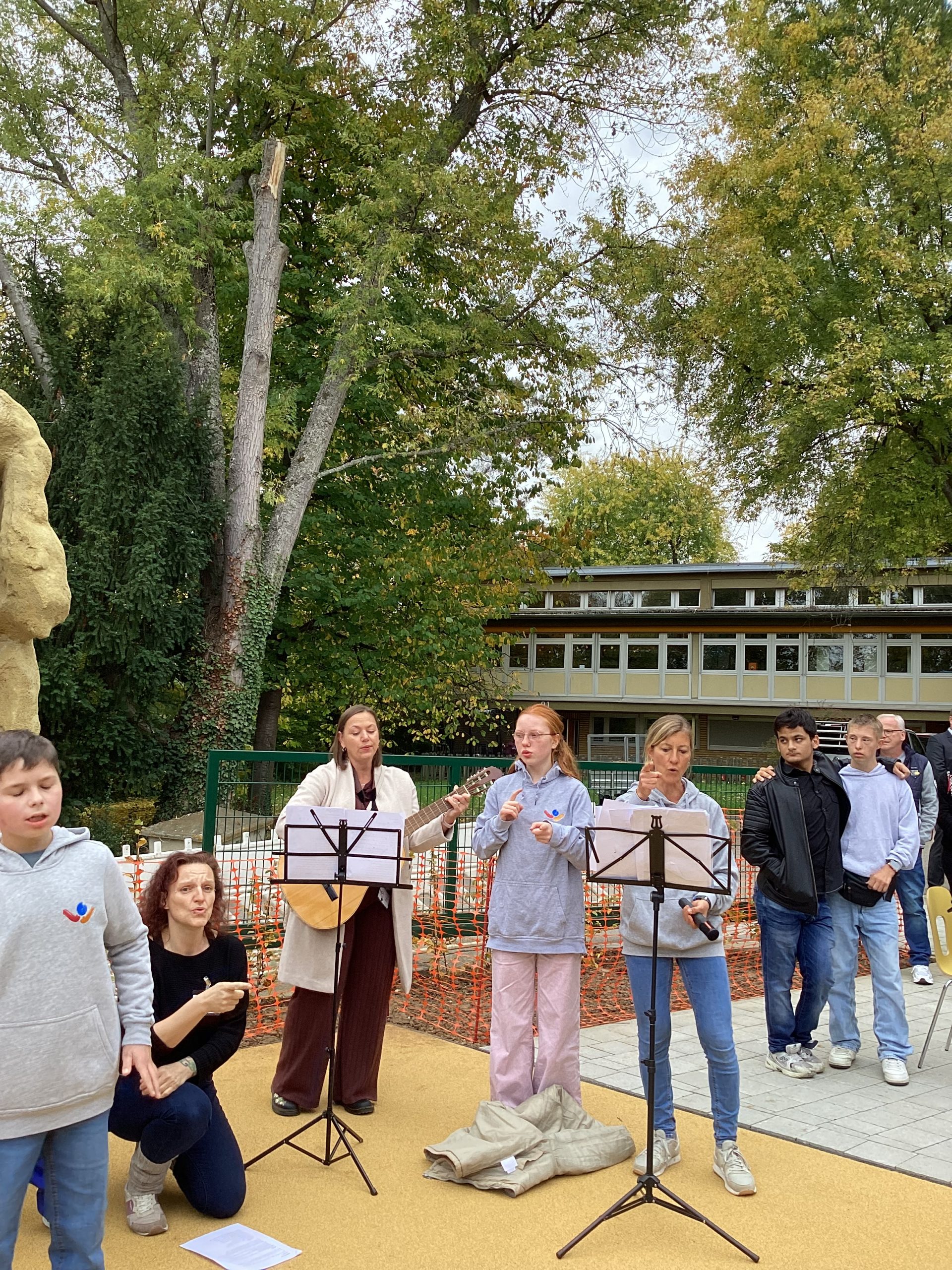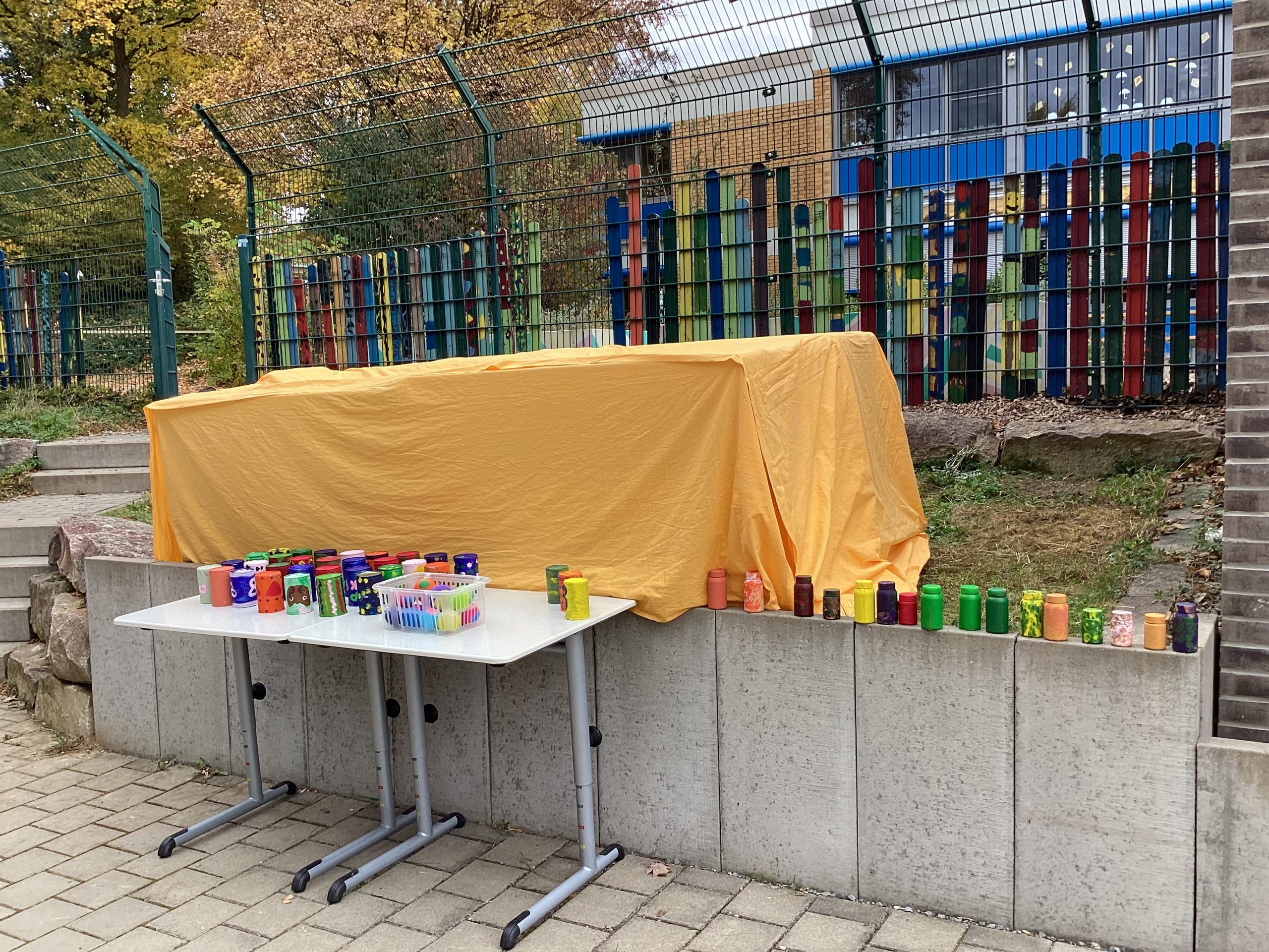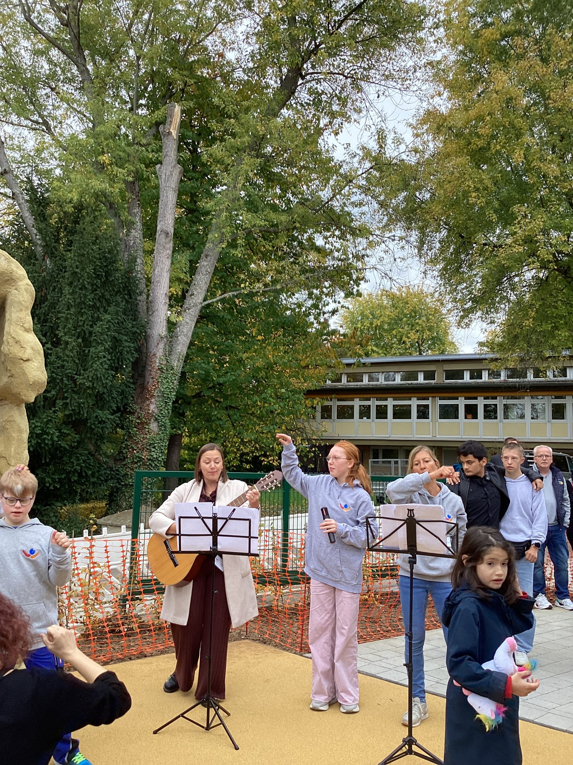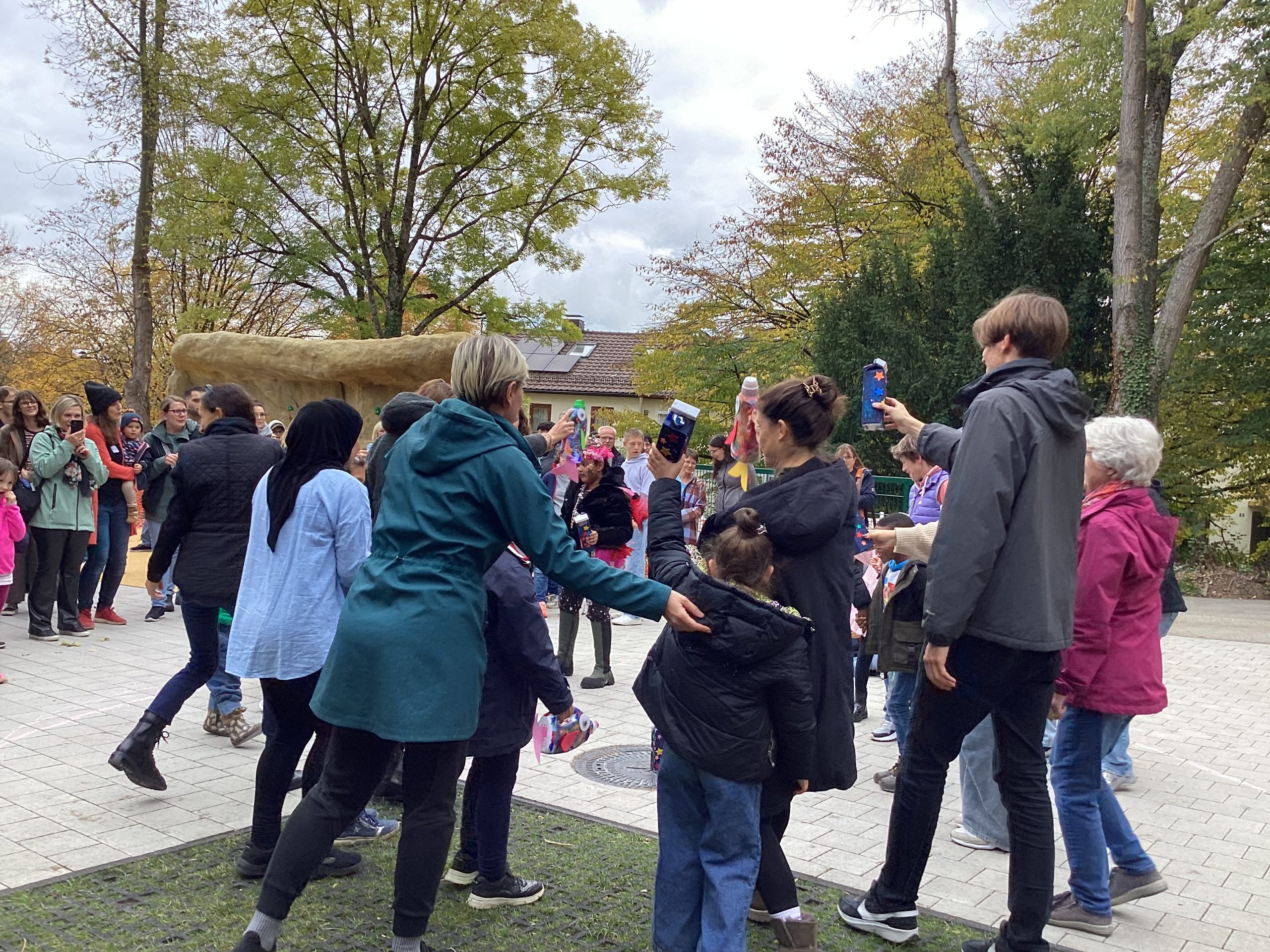 Am 17. Oktober fand unser Schulfest statt. In den Klassen und Projektgruppen wurde das Fest zum Thema „Aus alt – mach neu“ lange vorbereitet. Zu Beginn gab es einen Lichtertanz der Grundstufenschüler. Aus Milchpackungen und Waschmittelbehältern hatten sie Laternen gebastelt. Danach wurde das Fest von unserer Rektorin Michaela Ruckdäschel und Vertreterinnen und Vertretern der SMV eröffnet. Im Rahmen dieser Rede wurde auch der neugestaltete Pausenhof offiziell eröffnet. Anschließend sang der Chor der Hauptstufe drei moderne und zum Thema passende Lieder.