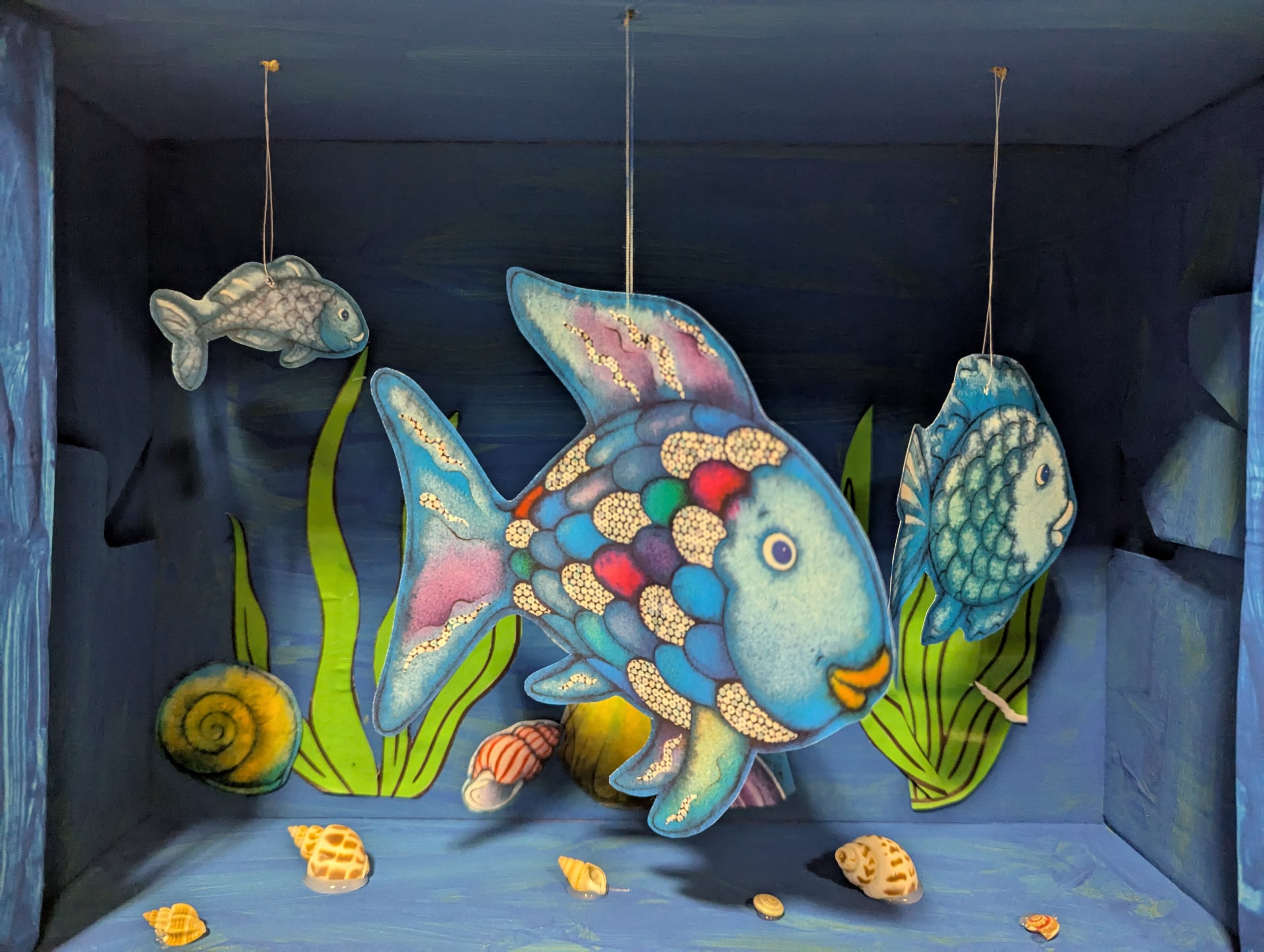 Die Schülerinnen und Schüler der H4 haben im September 2025 in Gemeinschaftskunde mit dem Thema Kultur und Vielfalt begonnen. Anhand der Geschichte des Regenbogenfischs werden sie sich in den kommenden Wochen mit Gründen für die Entstehung von Konflikten auseinandersetzen und Konfliktlösungsstrategien erproben. Als Start in die Unterrichtsreihe haben die Schülerinnen und Schüler ein Diorama aus einem Schuhkarton zum Lebensraum des Regenbogenfisches hergestellt.